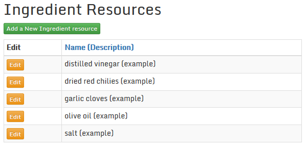 When you have finished entering all ingredient resources, the list should look something like this: